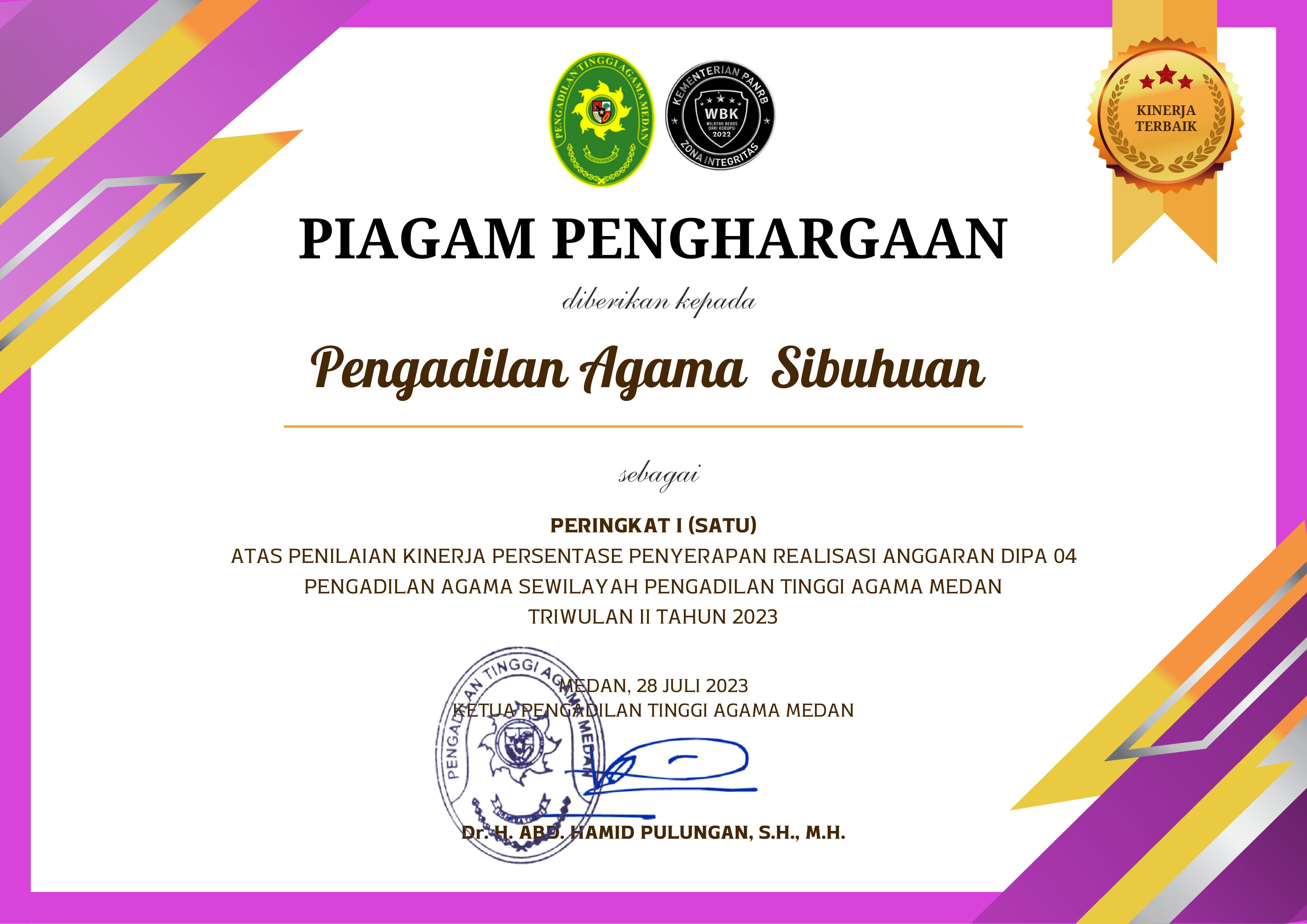 Sibuhuan – Pengadilan Agama (PA) Sibuhuan kembali menorehkan prestasi gemilang di tingkat prov...